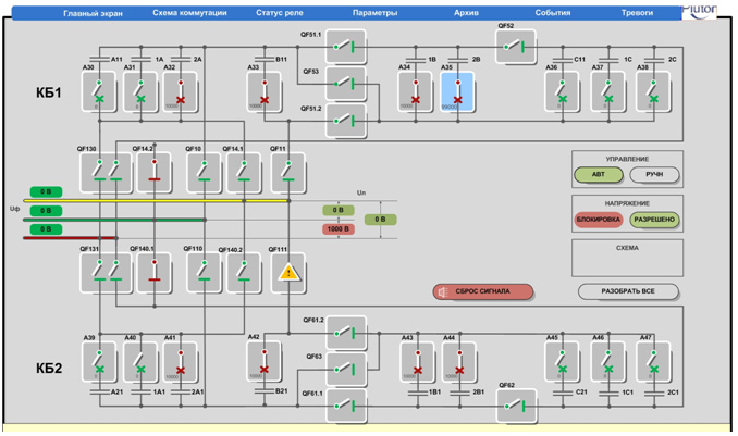 • беспрерывную индикацию в режиме реального времени состояния вакуумных выключателей на мнемосхеме промышленного компьютера;